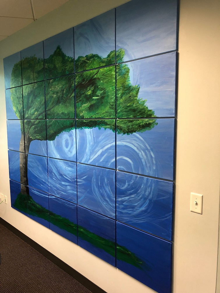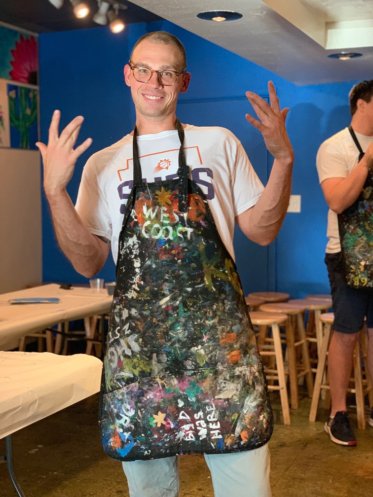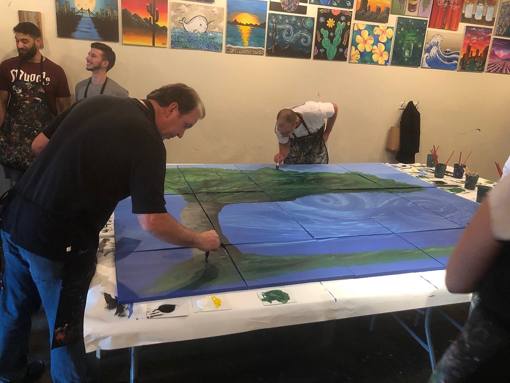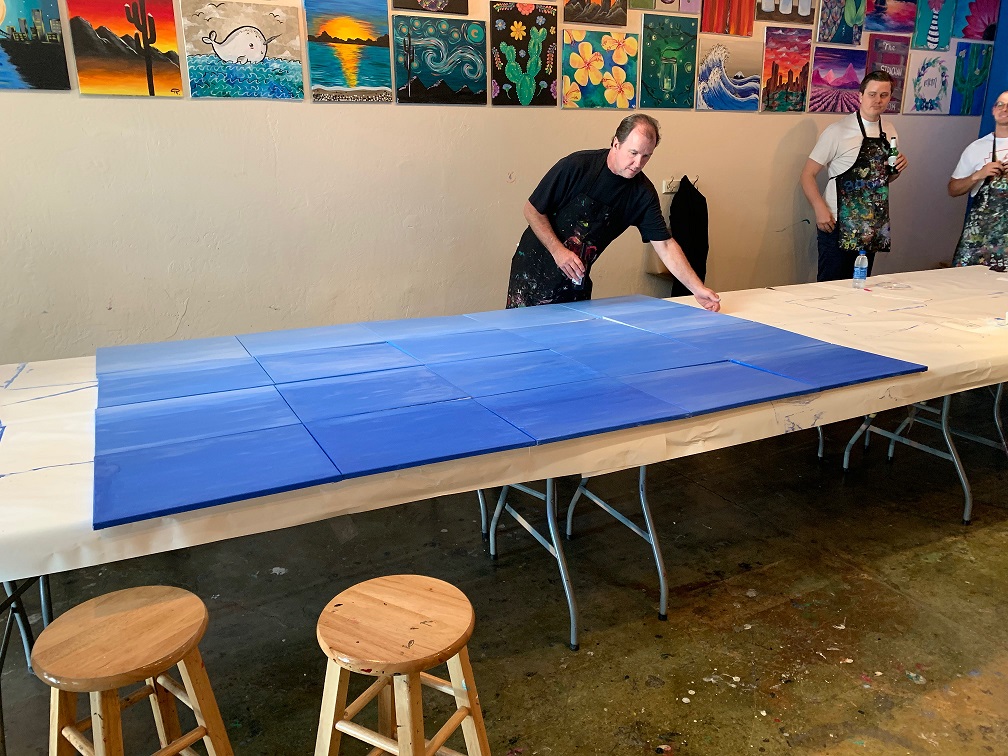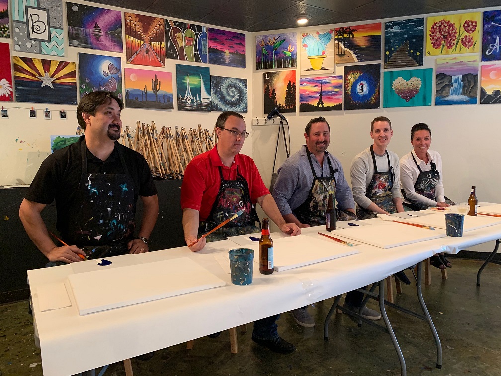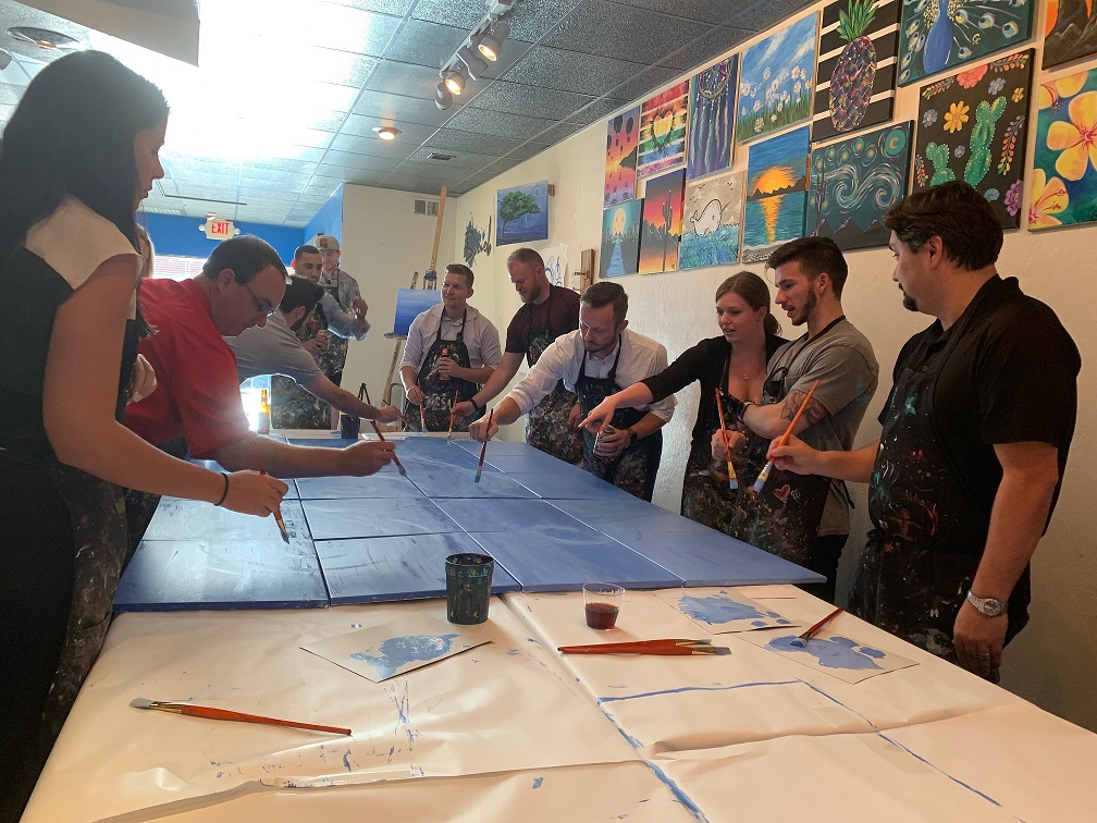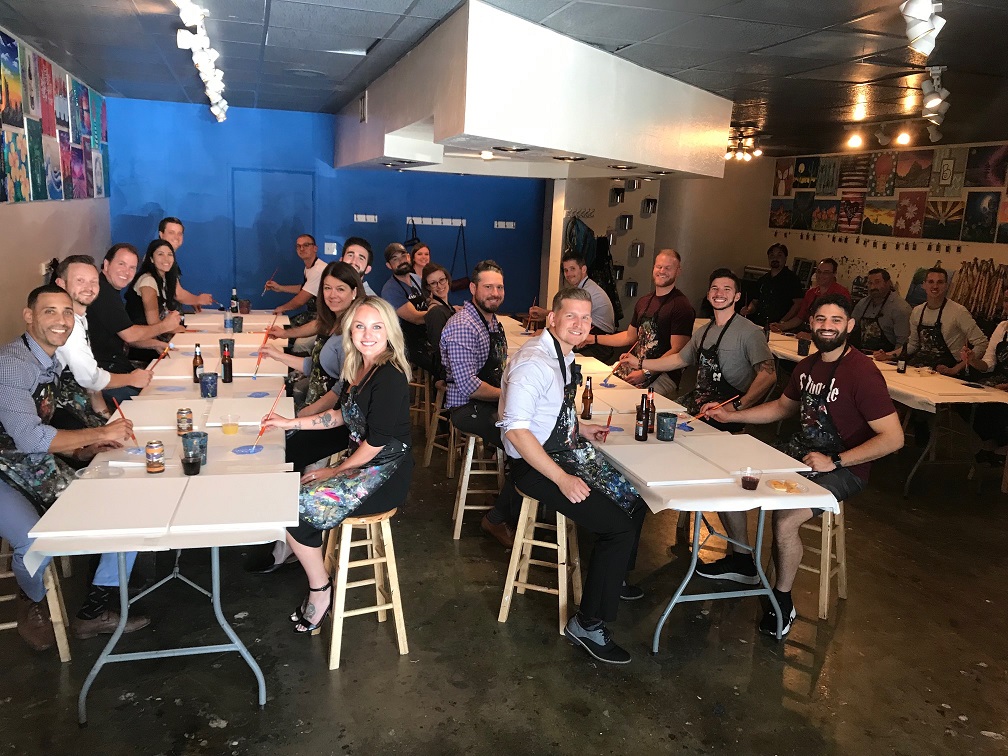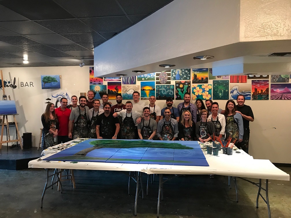 A group of leaders here at StormWind Studios recently got together for an evening of painting, team-bonding, and yes, a little wine. Not only did everyone have a blast, but they also created a beautiful piece of collaborative artwork to hang in the StormWind headquarters! Sounds like a win-win to us…