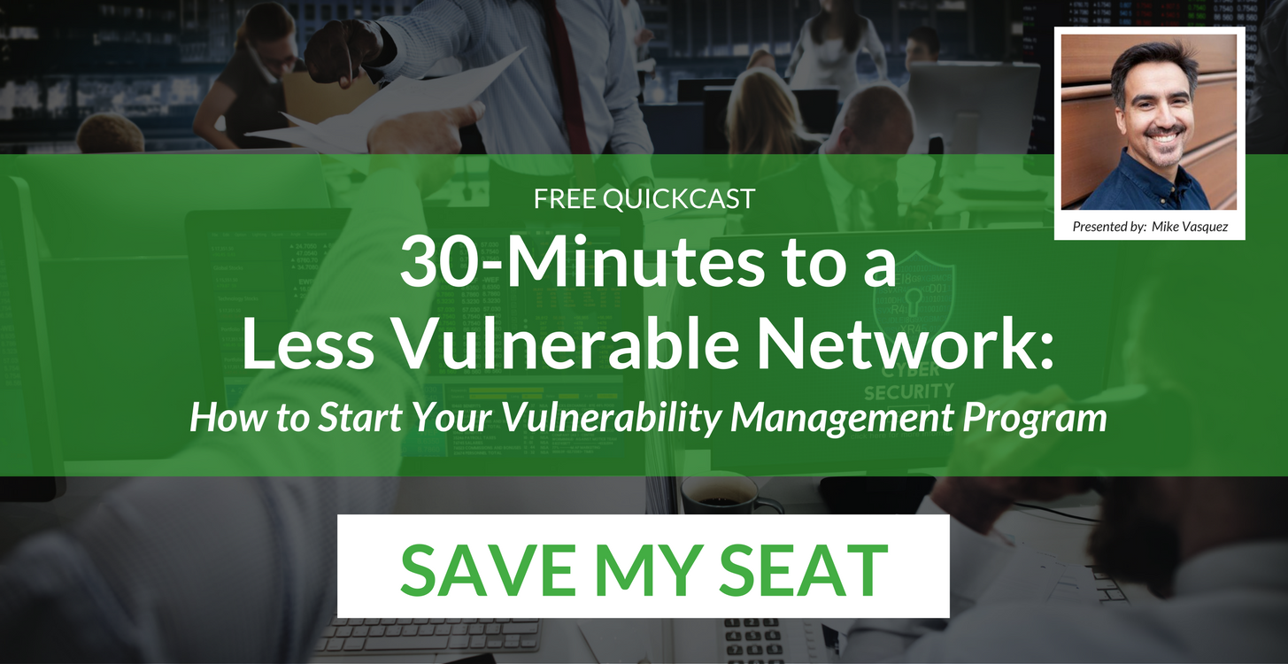 By reading this blog post, you’ve been invited to StormWind Studio’s upcoming QuickCast: 30-minutes to a Less Vulnerable Network with Mike Vasquez. This QuickCast is exclusive to IT professionals.